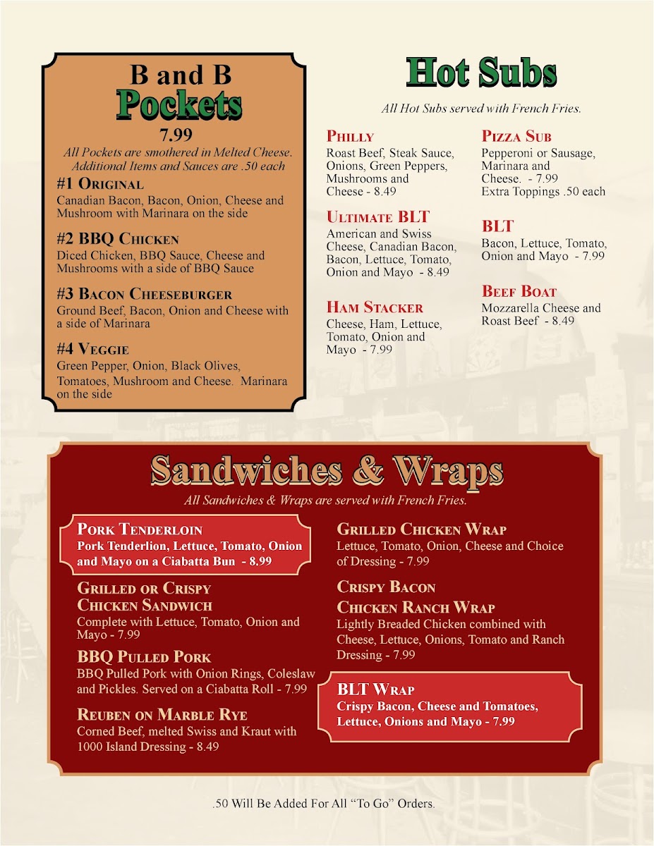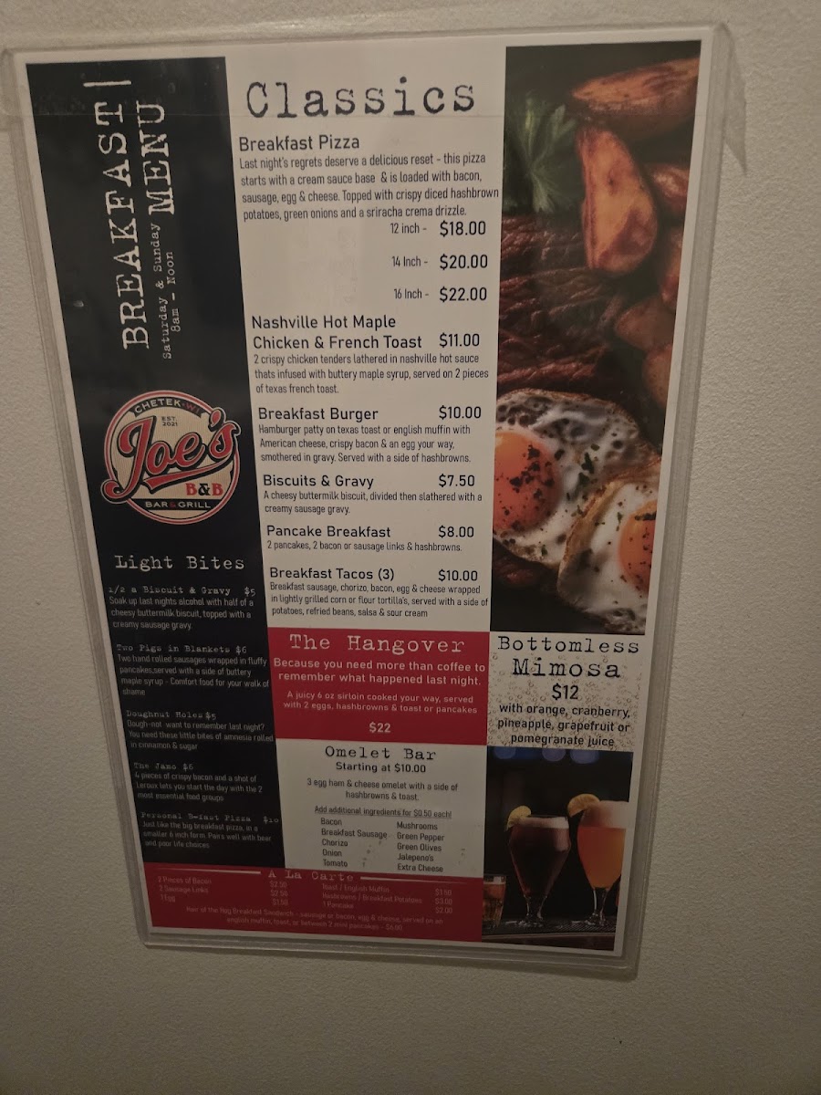 Joe’s B&B Bar and Grill Menu