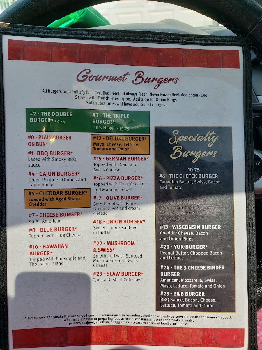 Joe’s B&B Bar and Grill features a straightforward menu centered on casual, comforting fare that suits the relaxed atmosphere of a small-town Wisconsin bar. Whether you’re stopping by for a hearty American breakfast or settling in for an evening with friends, the menu offers accessible favorites made with care.